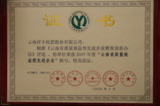 云南省质量效益先进企业特别奖