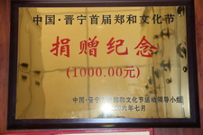中国晋宁首届郑和文化节捐赠纪念