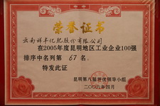 昆明地区工业企业100强排序中名列第67名